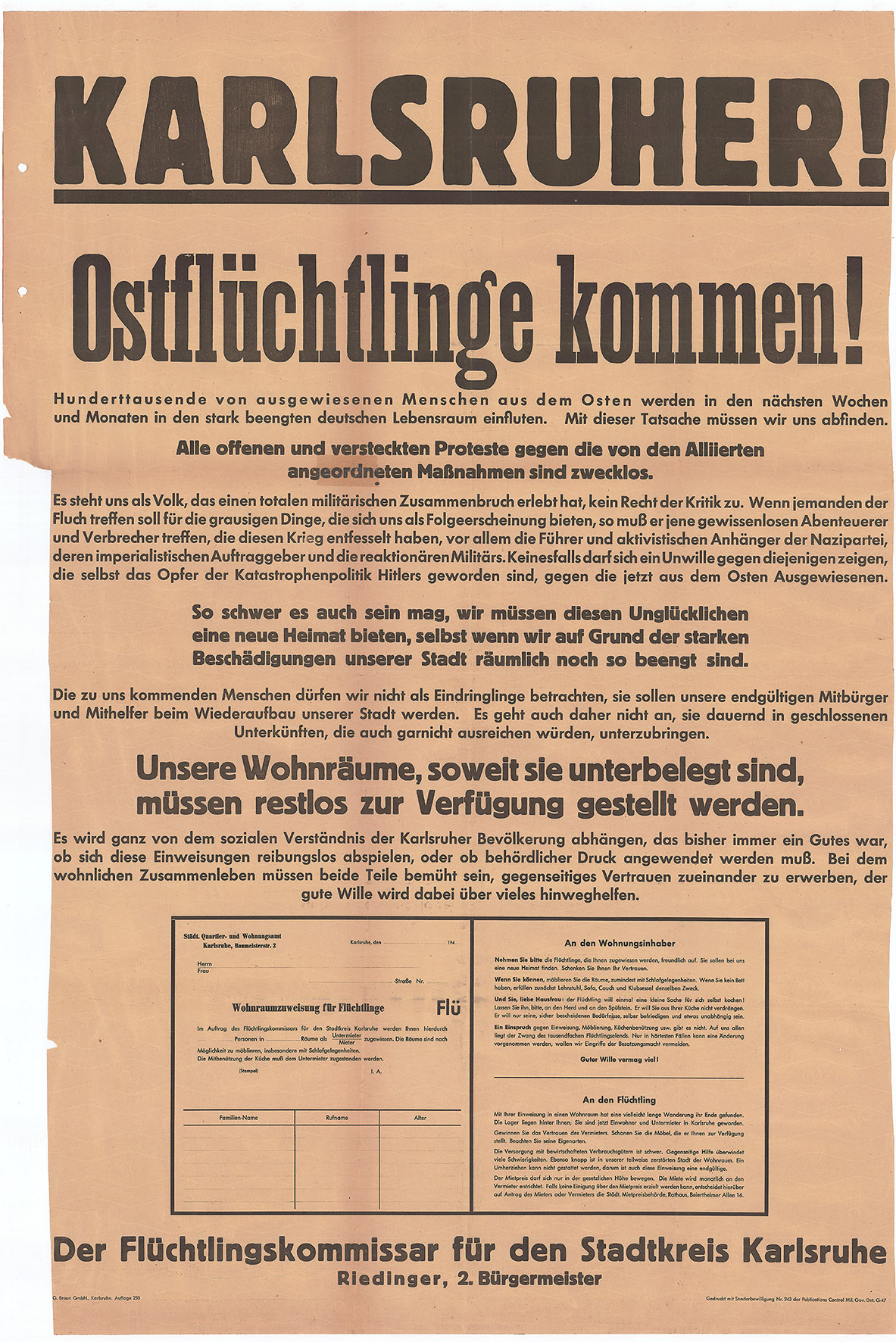 Plakat 1946, Stadtarchiv Karlsruhe 8/PBS X 2779.