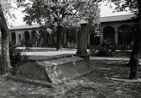 Grabzeichen außerhalb der Gruftenhalle, 1959, Stadtarchiv Karlsruhe 8/Alben 4/8b.
