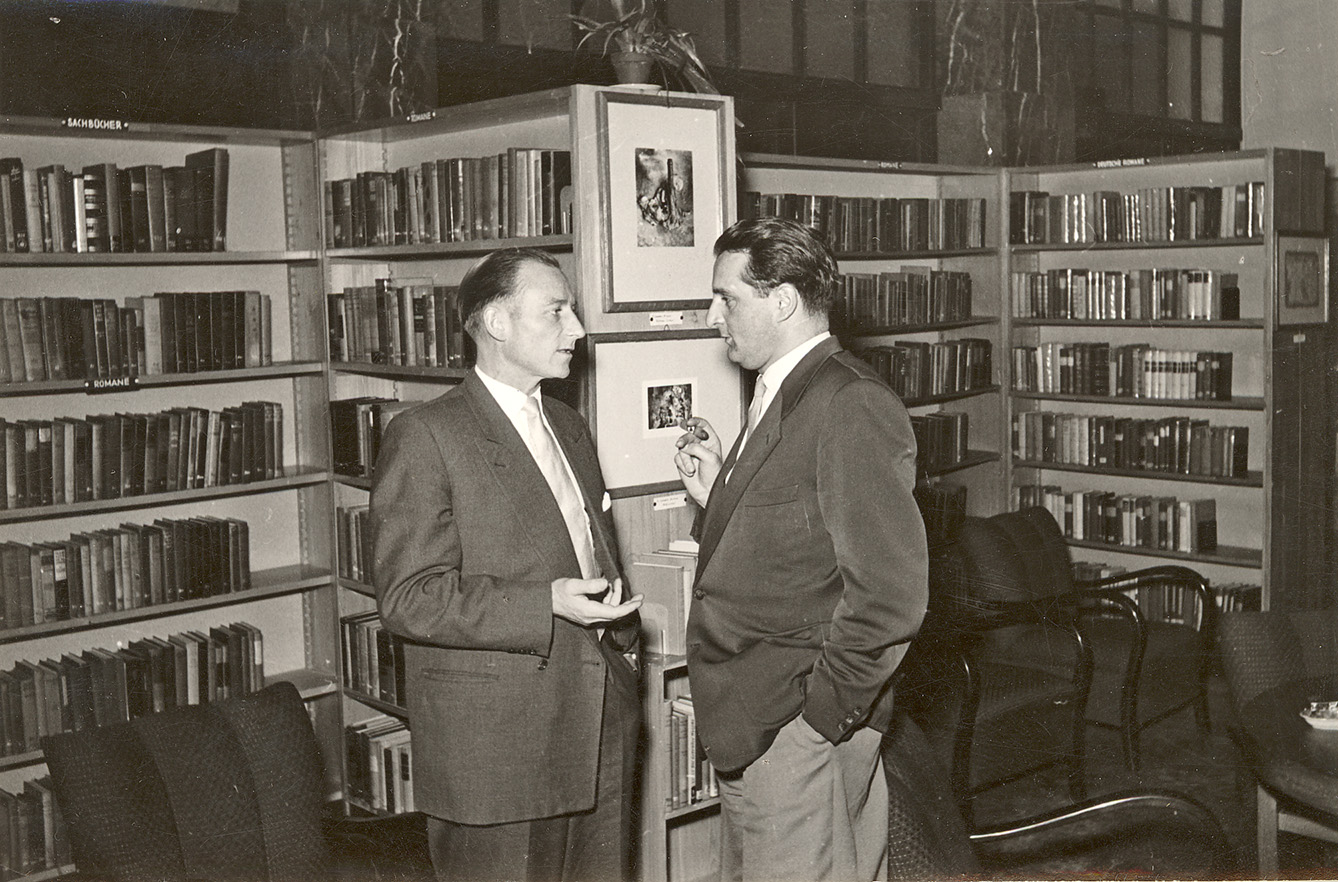 Ausstellung in der Deutsch-Amerikanischen Bibliothek im Rathaus West, 19. Januar 1956, Stadtarchiv Karlsruhe 8/PBS oXII 339.