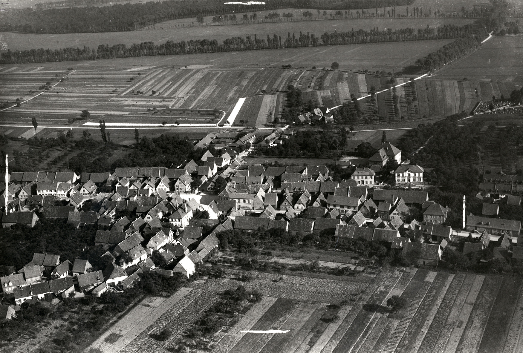 Luftansicht Hagsfelds vor der Zerstörung im Zweiten Weltkrieg, 5. Oktober 1926, Stadtarchiv Karlsruhe 8/PBS XIIIa 200.