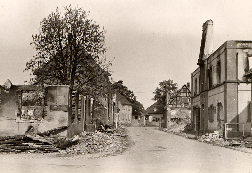 Das zerstörte alte Rathaus, Jägerhausstraße 6, um 1945, Stadtarchiv Karlsruhe 8/PBS XIIIa 576.