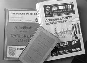 14:43, 23. Jun. 2016 Ereig-0284.jpg (Datei) 137 KB Stadtarchiv3 Adressbücher der Jahre 1979 und 1945/46 sowie ein Faksimile der Erstausgabe von 1818, Stadtarchiv Karlsruhe 8/BA Schlesiger A36/200/2/8. 1