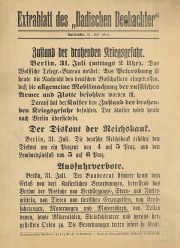| 12:51, 23. Jan. 2017 | Ins-1153 1.jpg (Datei) | 178 KB | Stadtarchiv3 | Extrablatt des Badischen Beobachters, 31. Juli 1914, Stadtarchiv Karlsruhe 8/ZeE 346, Bl. 1. | 1 | |