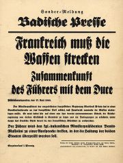 | 12:02, 2. Feb. 2017 | Ins-1147.jpg (Datei) | 172 KB | Stadtarchiv3 | Sondermeldung der Badischen Presse: Frankreich muß die Waffen strecken. Zusammenkunft des Führers mit dem Duce, 17. Juni 1940, Stadtarchiv Karlsruhe 8/PBS X 3157. | 1 | |