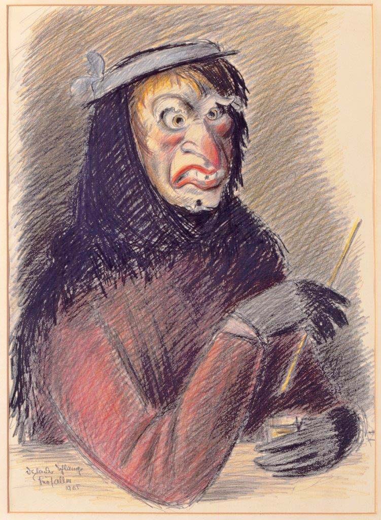Leo Faller, Daxlander Schlampe, Kohle und Buntstift 1965, Privatbesitz.